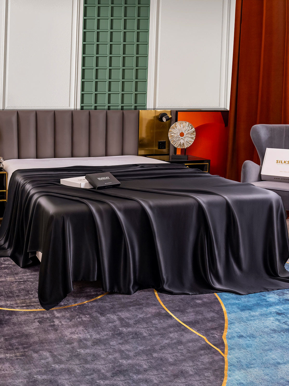[أسود] SilkSilky-SA 25Momme الحرير الخالص Sheet 003