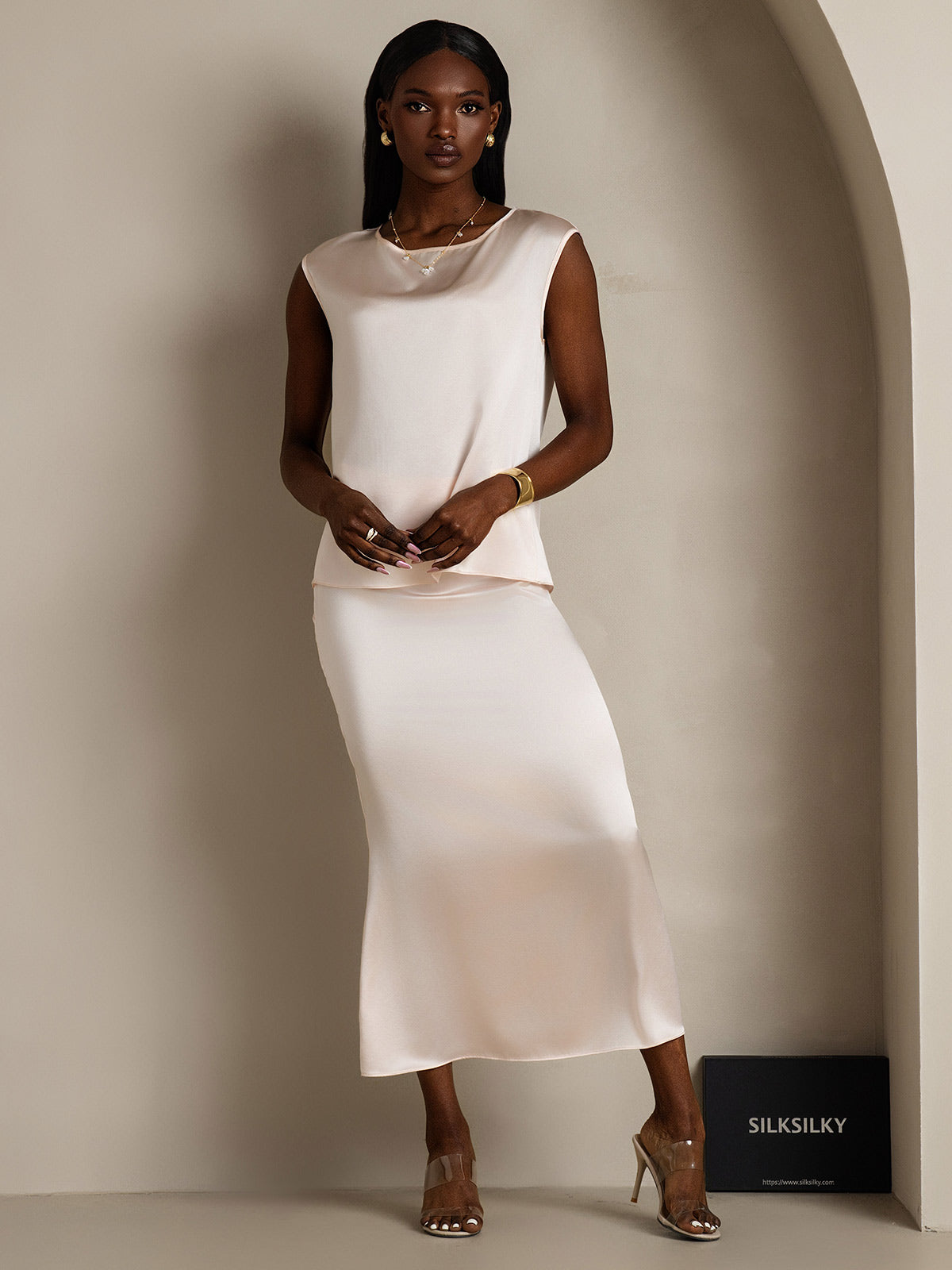 19Momme Top Casual in Seta Senza Maniche