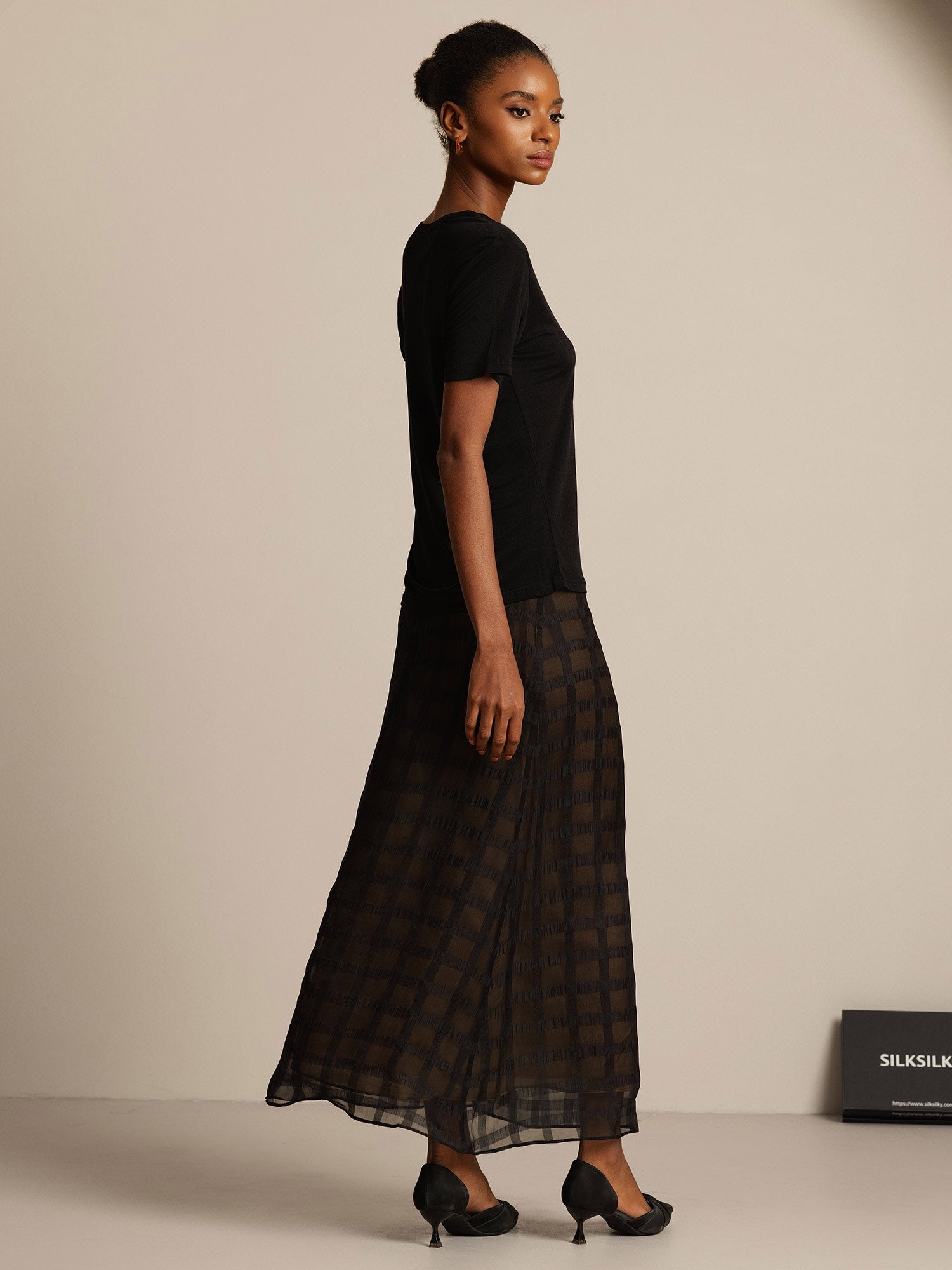 SilkSilky-SA محبوك الحرير رقبة مستديرة تي شيرت نسائية video 001